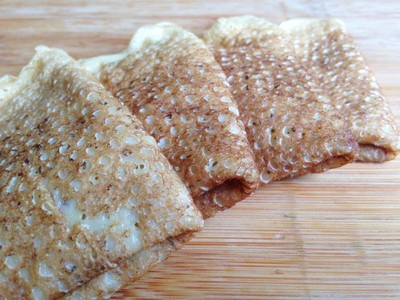 Качество блинов сильно зависит от качества муки. Я использую цельнозерновую мелко молотую, если у вас более грубый помол муки, то рекомендую разбавлять белой мукой 1:1.