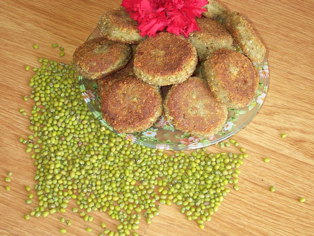 Чудесные котлетки из мунг-дала, его еще называют маш. Говорят, что в отличие от обычного гороха, он легко усваивается. Варить его тоже легко и быстро... у меня ушло 20 минут на варку + около 50-ти минут на все остальное.