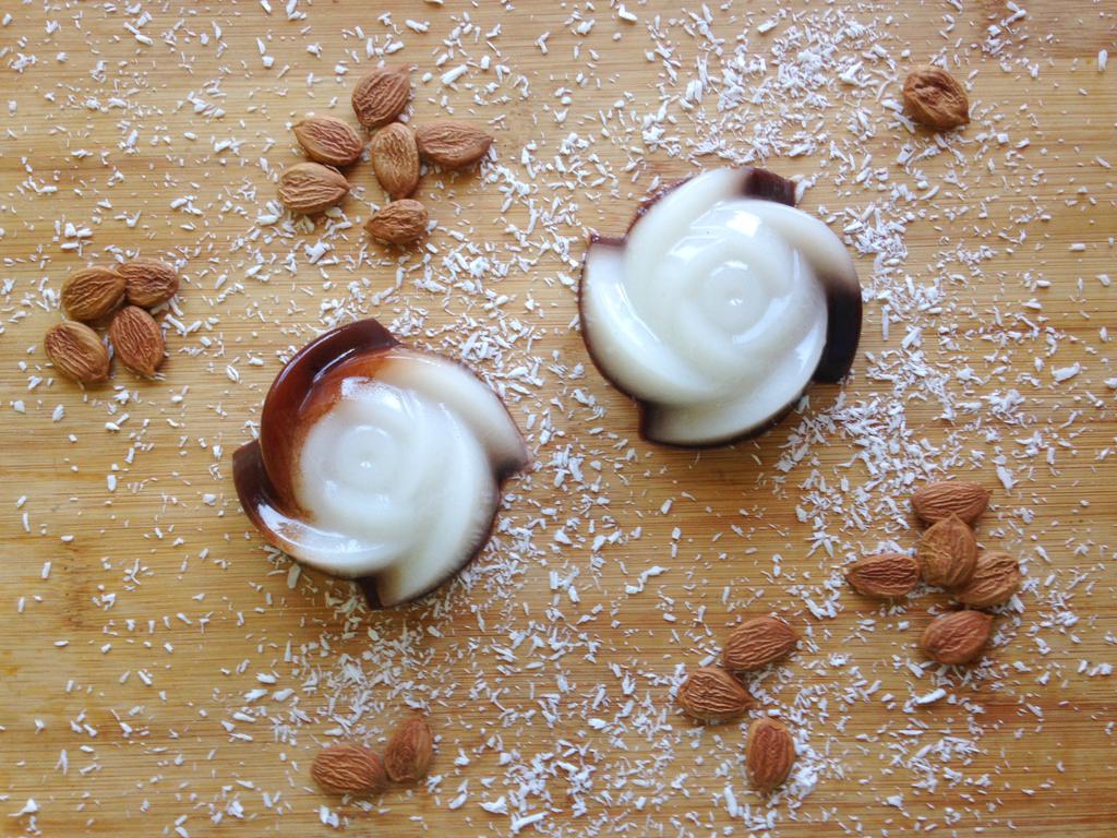 Получается очень сладкое. Завачивайте агар в двух емкостях для двух слоев одновременно.